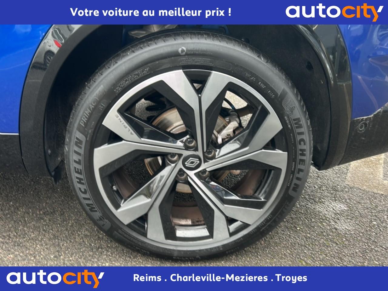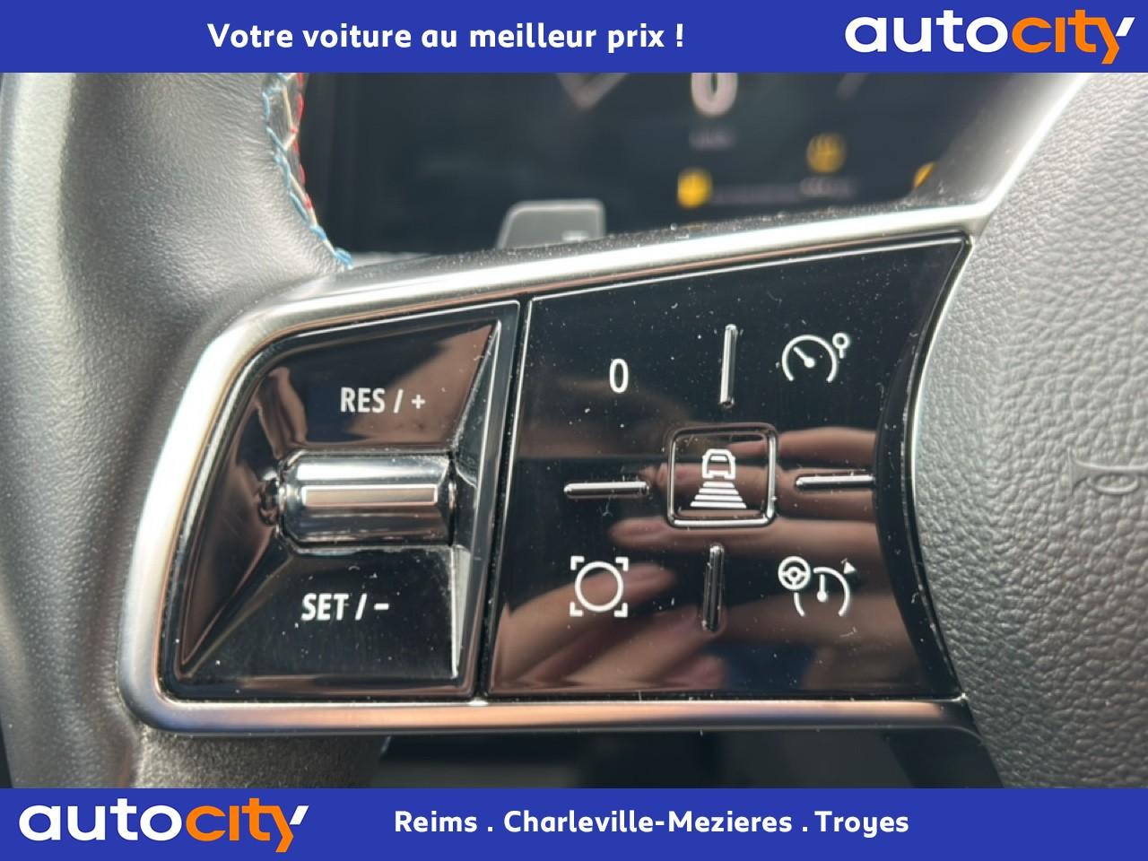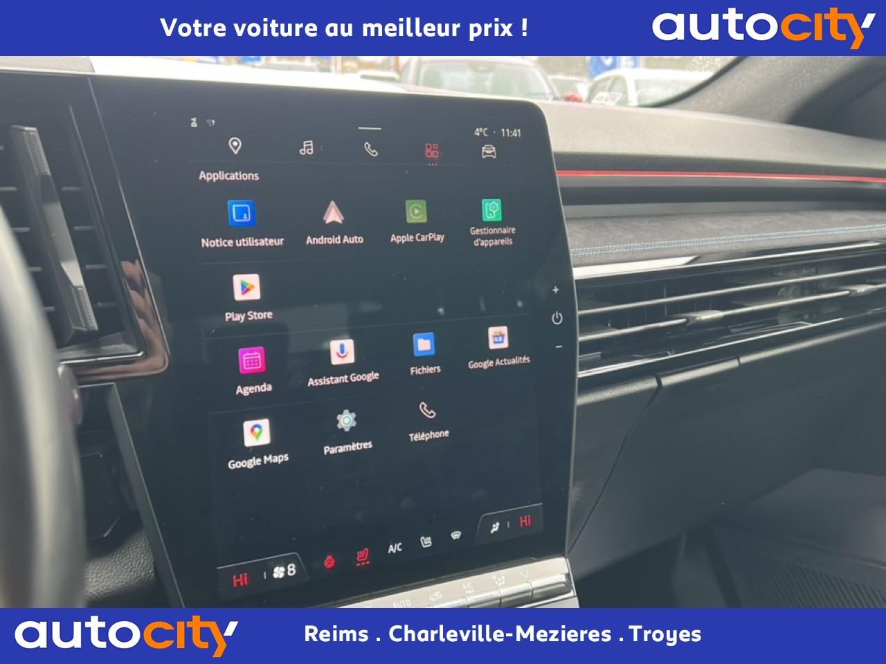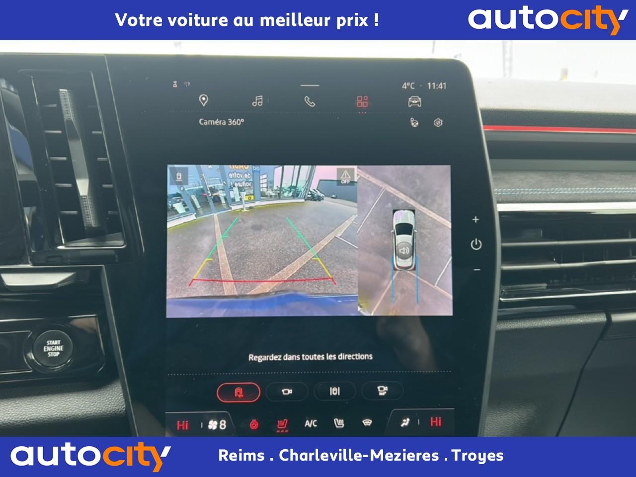 Active driver assist : assistant de conduite avec contrôle longitudinal et latéral du véhiculeAide au démarrage en côteAide au maintien dans la voieAide au parking avant et latéralAide au stationnement arrièreAlerte de changement de voie intempestifAlerte de franchissement de ligneAlerte distance de sécuritéAllumage automatique des essuie-glacesAntenne de type requin noir étoiléAppuis-tête avant grand confortAuto-update inclus pendant 7 ansBanquette arrière coulissante 1/3-2/3 avec accoudoir centralBarres de toit longitudinales noires satinéesBouclier avant avec lame sport gris satinCalandre à damier ice blackCaméra de reculCarte Renault, accès et démarrage « mains-libres »Chargeur de smartphone par inductionClimatisation automatique bi-zoneDécors de planche de bord et panneaux de portes AlcantaraEclairage intelligent (commutation automatique feux de croisement/feux de route)Feux LED adaptive vision (avec fonction antibrouillard intégrée)Frein à main automatiqueFreinage d'urgence autonome avec fonction intersectionFreinage d’urgence automatique urbain/péri-urbain avec détection piétons et cyclistesHayon motorisé avec ouverture mains-libresJantes alliage 20" daytona diamantées noirLimiteur de vitesseLogo avant et arrière ice blackMonogramme gris satinéNotice d’utilisation digitale embarquée dans le système multimédia du véhiculeOpen R Link 12": système multimédia avec google intégré incluant pack navigation (Google Mpas et Google Assistant) pendant 5 ans et pack infotainment (Google Play) avec 3 GBPack City plusPack City PremiumPack Comfort PremiumPack remote services (via l'application My Renault) inclus pendant 5 ansPack SafetyPédalier en aluminiumPeinture Rouge FlammeRenault MULTI-SENSE (choix des modes de conduite)Réplication smartphone compatible Android Auto & Apple CarPlayRétroviseur intérieur électrochrome sans contourRétroviseurs rabattables électriquementSellerie Mixte tissu et Alcantra avec surpiqûres bleuesSystème d'appel d'urgenceSystème de surveillance de la vigilance du conducteurTableau de bord open R 12,3"Traitement sonore Arkamys Auditorium avec 6 haut-parleursVitres teintées arrièresVolant spécifique avec insert Alcantara