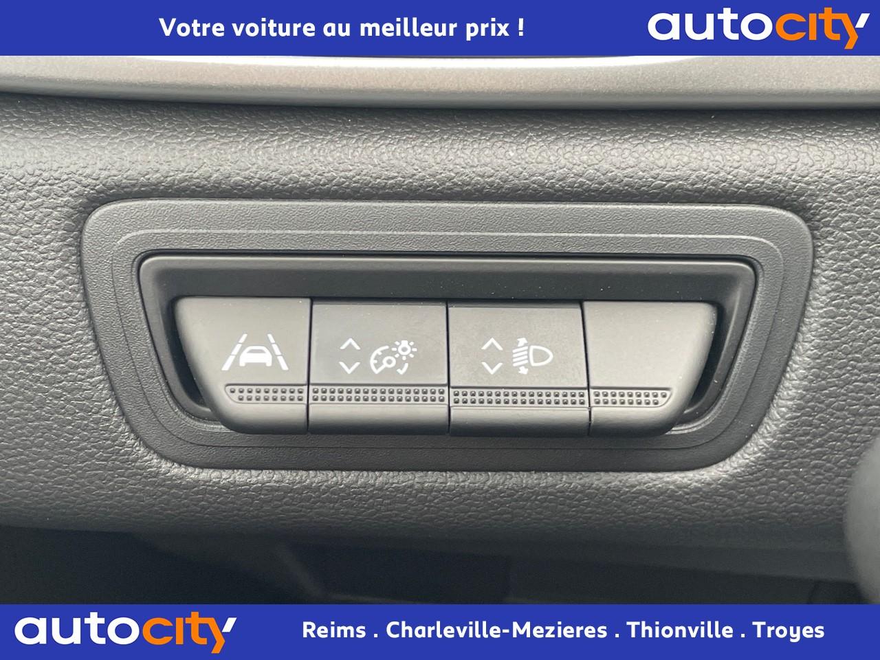 2 prises USB avantABS avec aide au freinage d'urgenceAccoudoir / console centrale avec rangementAccoudoirs de porte gainés en matériau moussé noir pailletéAide au démarrage en côteAirbags frontaux et latéraux (tête thorax),conducteur et passagerAlerte de sortie de voie avec volant haptiqueAlerte distance de sécuritéAlerte oubli des ceintures de sécurité aux 5 places avec détection des occupantsAllumage automatique des projecteurs en fonction de la luminositéAssistance au maintien de voieBandeau supérieur de décor grisBanquette arrière coulissante, rabattable 1/3-2/3 avec 3 appuis-têtes réglables en hauteurBouton d’appel d’urgence r-callBouton de démarrage Start/Stop avec contour chroméCeinture centrale arrière 3 points, avec prétensionneur et limiteur d’effortCeintures de sécurité avec prétentionneurs et limiteurs d’effort aux places avant et latérales arrièreCeintures de sécurité conducteur et passager avant réglables en hauteurClimatisation manuelleCoiffe supérieure de planche de bord mousséeCompteurs analogiquesCondamnation électrique centralisée des portes avec télécommande et condamnation des portes en roulantDécors intérieurs chromés (cerclage aérateurs, inserts volant et entourage de levier de vitesse)Déflecteurs d'airDésactivation manuelle de l'airbag passagerEclairage avant et arrière Full LED Pure VisionEnjoliveurs 17'' NympheaESC (contrôle électronique de la trajectoire)Feux de stop à LEDFreinage actif d’urgence, avec détection des voitures, motos, piétons, cyclistes (jour et nuit)Indicateur de changement de vitessesKit gonflage de réparationLève-vitre électriques à impulsionMode EcoPlanche de bord gainée en materiau moussé noir pailletéPlancher de coffre modulable 2 positionsPoignées de portes extérieures couleur carrosseriePoignées de portes intérieures finition chrome satinéRadio Numérique DABReconnaissance des panneaux de signalisationRégulateur et limiteur de vitesseRéplication smartphone compatible Android Auto & Apple CarPlayRétroviseurs extérieurs électriques et dégivrantsRétroviseurs peints noirsSellerie équilibre tissu gris et noirSiège conducteur réglable en hauteurSkis avant et arrière GrisSystème audio Arkamys avec 6 haut-parleursSystème de détection de la pression des pneusSystème de fixation ISOFIX aux places latérales arrière et passager avantSystème Multimédia EASY LINK avec écran tactile 7”Tableau de bord avec écran numérique couleur 4,2Volant réglable en hauteur et en profondeurVolant Soft-Touch