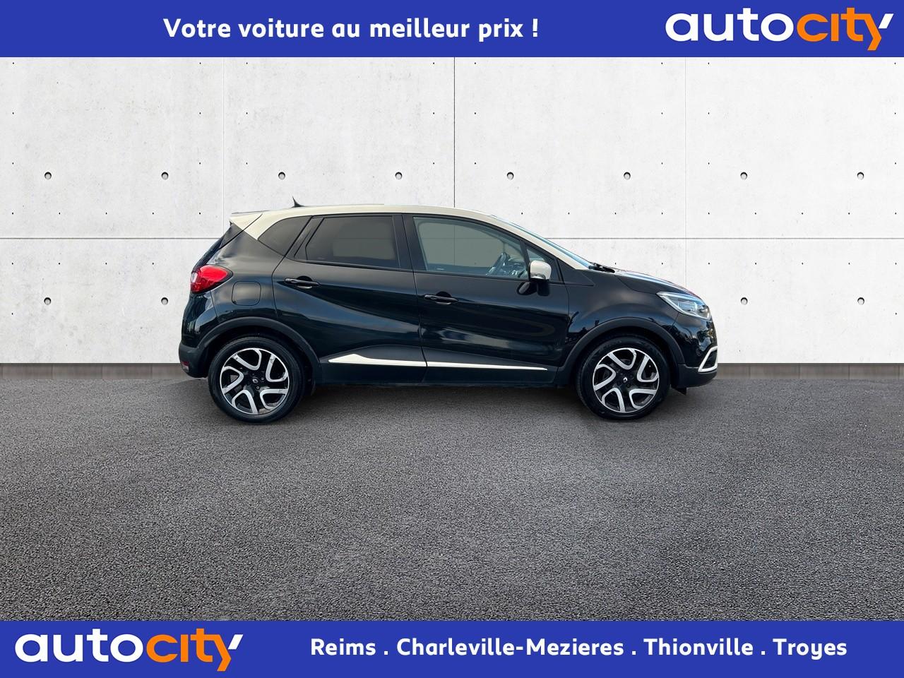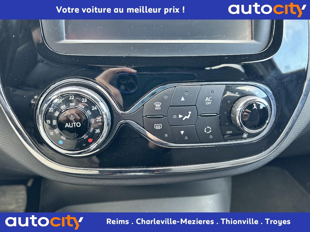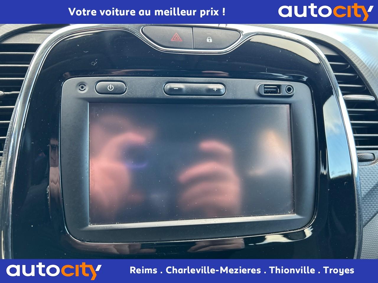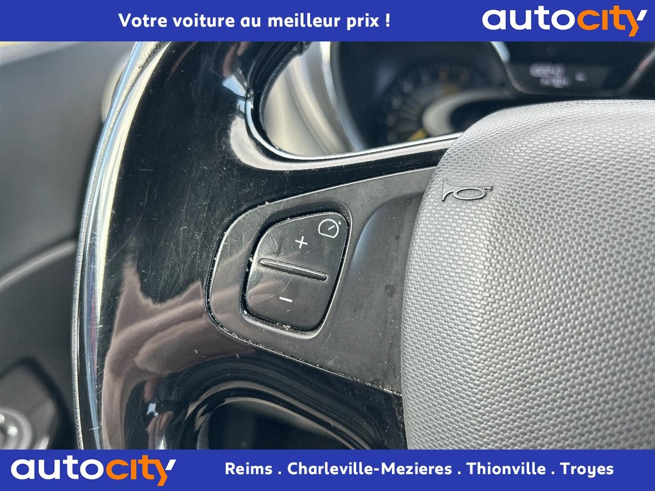 3 appuie-tête arrière réglables en hauteurABS avec aide au freinage d'urgenceAide au démarrage en côteAirbags frontaux et latéraux conducteur et passager déconnectablesAlerte de ceinture de sécurité conducteur et passagerAmbiance foncéeBaguettes chromées sur le coffreBaguettes latérales de portes chroméesBanquette arrière 2/3-1/3 et coulissanteBoucliers ton caisseCarte Renault avec accès et démarrage mains-libres avec fermeture à l’éloignementCerclage chromé des projecteurs antibrouillardCondamnation automatique des ouvrants en roulantCoques de rétroviseurs ton caisseDirection assistée électrique avec assistance variableÉlastiques de rangement au dos des sièges avantEmbase de levier de vitesses chroméFeux de jour à LEDJonc de calandre chroméJonc de hayon chroméLève-vitre électrique conducteur impulsionnelLève-vitres électriques avant et arrièreMode de conduite Eco avec bouton d'activationOrdinateur de bordPack CityPack ConfortPack intérieur Chrome BrillantPack look NoirPack MediaNavPeinture bi-ton (toit, coques de rétroviseurs, montants de pare-brise)Phares avant antibrouillard avec fonction ''Corner-light''Plancher de coffre réversiblePoignées de portes ton caisseRangement central amovibleRégulateur et limiteur de vitesseRoue de secours “galette”Sellerie tissu BleuSiège conducteur réglable en hauteurSièges déhoussables Captur avec housses de sièges « Zip Collection »Système de contrôle de trajectoire (ESP) et système antipatinage (ASR)Système de fixation ISOFIX aux places latérales arrièreSystème de récupération d'énergie au freinageSystème de surveillance de pression des pneusTiroir EasyLife avec éclairageVolant + pommeau de levier de vitesse cuirVolant réglable en hauteur