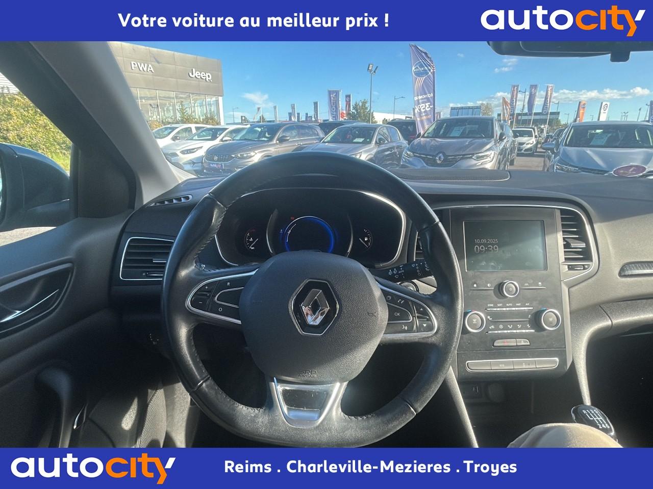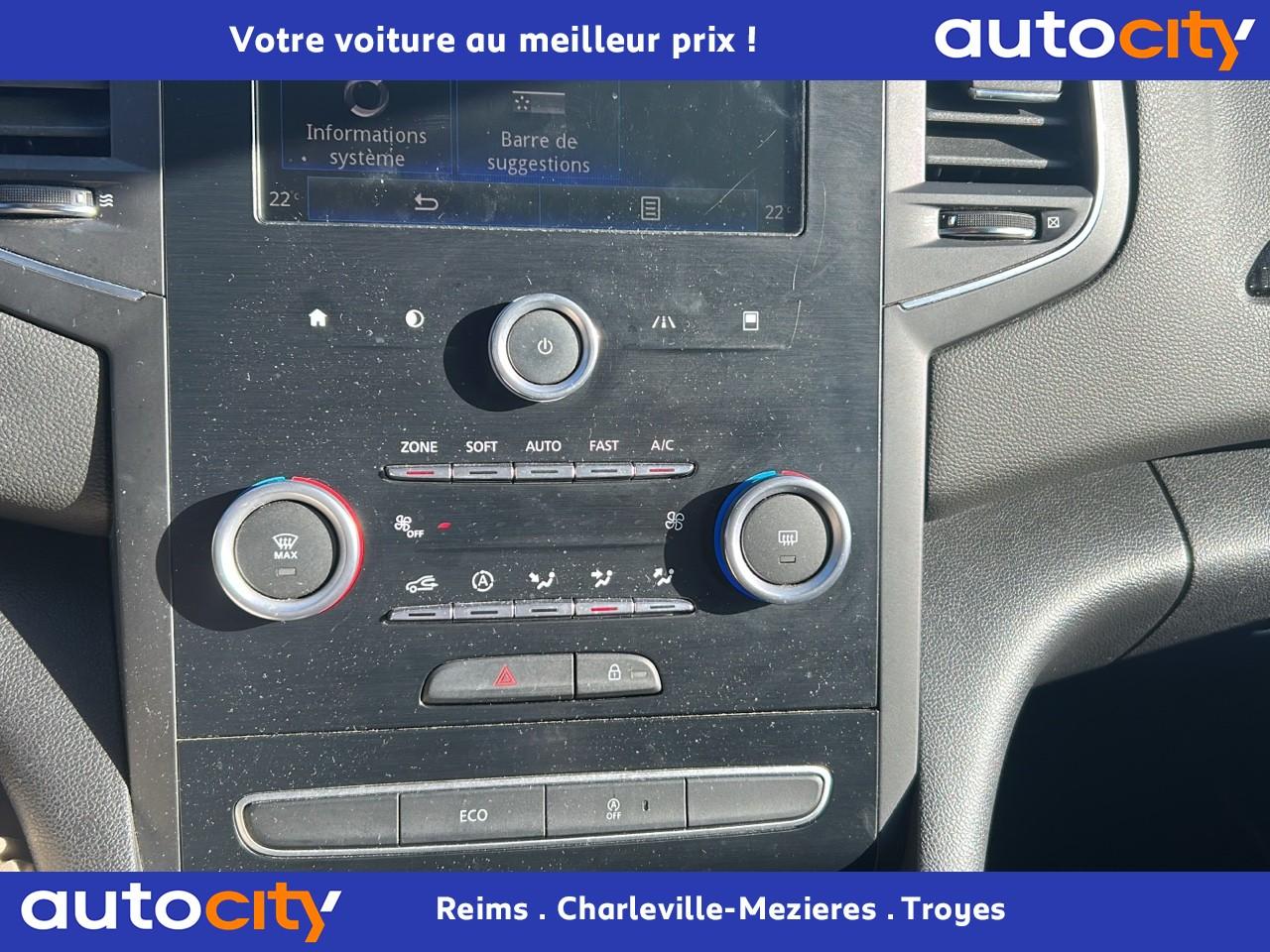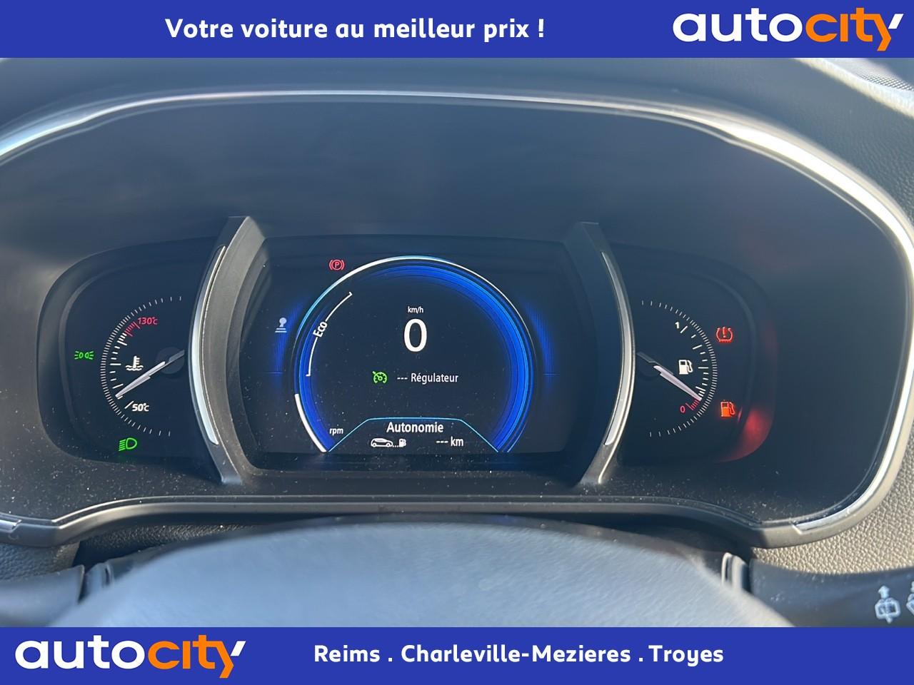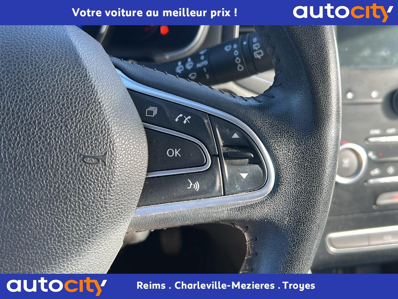 ABS avec aide au freinage d'urgenceAide au démarrage en côteAide au parking avantAide au stationnement arrièreAirbags frontaux conducteur et passager adaptatifs (airbag passager déconnectable)Airbags latéraux (thorax / bassin) avantAirbags rideaux de têtes aux places avant et arrièreAlerte de franchissement de ligneAlerte de survitesse avec reconnaissance des panneaux de signalisationAppuie-tête AV et AR réglables en hauteurBanquette arrière rabattable 1/3-2/3Boîte à gants éclairéeCapteur de toxicité avec recyclage d'airCarte Renault avec accès et démarrage mains-libres avec fermeture à l’éloignementClignotants à impulsionClimatisation automatique bi-zoneCommutation automatique des feux de croisement et de route, Light AssistCompteur digital TFT 7“ avec matrice couleurCondamnation automatique des ouvrants en roulantCondamnation centralisée des portesCondamnation des vitres électriques arrière au poste de conduiteConsole centrale avec accoudoir et compartiment de rangementContrôle dynamique de trajectoire (ESC)Détecteur de pluie et allumage automatique des projecteursFeux de jour à guide de lumière LED et effet 3DFeux de jour arrière LED 3D Edge LightFrein de parking manuelGrille de calandre noir brillant et chromeIndicateur de changement de vitessesJantes design 16" CompleaKit de réparation des pneusLécheurs de vitres chromésLève vitres avant électriques à impulsionLève-vitres arrière électriques impulsionnelsPack R-Link 2Poches aumônière au dos des sièges avantPoignées de porte avec jonc chroméPrise 12 V à l'arrièrePrise 12V à l'avantProgramme Eco-modeProjecteurs antibrouillardProjecteurs avant avec feux de jour à LED (6 LED)Régulateur et limiteur de vitesseRépétiteurs de clignotant à LED intégrés aux rétroviseursRétroviseurs extérieurs électriques et dégivrantsRétroviseurs extérieurs couleur carrosserieRétroviseurs extérieurs rabattables électriquementSéquence d‘accueil à l‘approche du véhicule avec éclairage de signature lumineuse et éclairage de solSellerie tissu carbone foncé avec surpiqûres argentSiège conducteur avec réglage lombaireSiège conducteur réglable en hauteurSiège passager réglable en hauteurSystème de coaching d‘éco-conduiteSystème de fixations ISOFIX aux 2 places latérales arrièreSystème de surveillance de pression des pneusVérins de capot moteurVolant cuir multifonctions réglable en hauteur et profondeur
