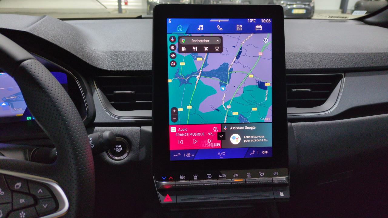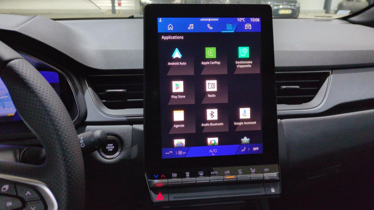 Aide au freinage d'urgence (a.f.u.)Aide au parking av/ar et latéralAirbag passager déconnectableAirbags frontaux conducteur et passager adaptatifAirbags latéraux avAlerte de distance de sécuritéAlerte détection de fatigueAlerte franchissement de ligne et assistant maintien dans la voieAllumage automatique des essuie-glacesAllumage automatique des phares avec capteur de luminositéAntenne requinAntiblocage des roues absAppuie-têtes arBanquette ar coulissante et rabattable 1/3 - 2/3Boîte de vitesse hybride multimode 6 rapportsCaméra de reculCarte "mains libres"Chargeur smartphone à inductionClimatisation automatiqueCommutation automatique des feux de route/croisement Contrôle de la traction (tcs)Direction assistéeEclairage av et ar full led pure visionFeux ar 3dFeux ar avec signature lumineuse yFrein de parking électrique avec fonction auto-holdHayon motorisé mains libresJantes alliage 18'' diamantées gravityKit de gonflageLève-vitres av électriques à impulsionMiroirs de courtoisie rétroéclairésMirror screen compatible apple carplay et androïd autoMy safety switch (raccourci vers configuration personnalisée des aides à la conduite)Peinture métallisée gris rafalePoignées de portes ton caisseReconnaissance des panneaux de signalisationRéglables et rabattables électriquementRégulateur de vitesse adaptatifRenault multi-senseRétroviseur intérieur chrome framelessRétroviseurs extérieurs dégivrantsSellerie technoSièges av réglables en hauteurSystème de contrôle de trajectoire esc avec aide au démarrage en côteSystème de freinage d'urgence avancéSystème de surveillance de la pression des pneusSystème isofix (i-size) aux places ar (latérales)Système multimédia openr link 10.4" avec google intégréTableau de bord avec écran numérique et personnalisable 10"Vitres latérales et ar surteintéesVolant réglable en hauteur et en profondeurVolant textile enduit grainé