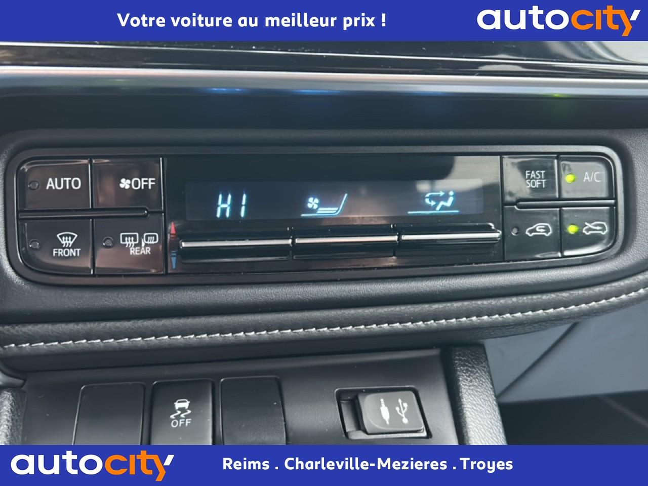 Accoudoir arrière avec porte-gobeletsAccoudoir central avant coulissant avec rangementAide au démarrage en côteAllumage automatique des projecteursAntenne de toit « aileron de requin »Baguette inférieure chromée (calandre avant et extracteur arrière)Barres de toit finition aluminium anodiséCache-bagages intelligentCaméra de reculCapteur de pluieClignotants à impulsionClimatisation automatiqueDouble plancher dans le coffreFeux de jour et feux arrière à LEDHabillage de la planche de bord moussé “Soft Touch”Jantes alliage 17” bi-ton TurbineLignes de vitres latérales chroméesOrdinateur de bord avec écran couleur TFT 4.2” multifonctionPeinture Rouge Allure nacréProjecteurs antibrouillardRégulateur de vitesseRétroviseur intérieur anti-éblouissementRétroviseurs extérieurs rabattables électriquementSellerie tissu 3DSiège passager réglable en hauteurSièges arrière rabattables 2/3-1/3Système d'ouverture / fermeture et démarrage sans clé “Smart Entry & Start”Système EasyFlatSystème Toyota Touch 2Tapis de sol avant et arrière veloursToyota Safety SenseToyota Touch & Go 2Vitres arrière électriquesVitres avant électriquesVitres latérales et lunette arrière surteintéesVolant en cuir Nappa multi-fonctions réglable en hauteur et profondeur