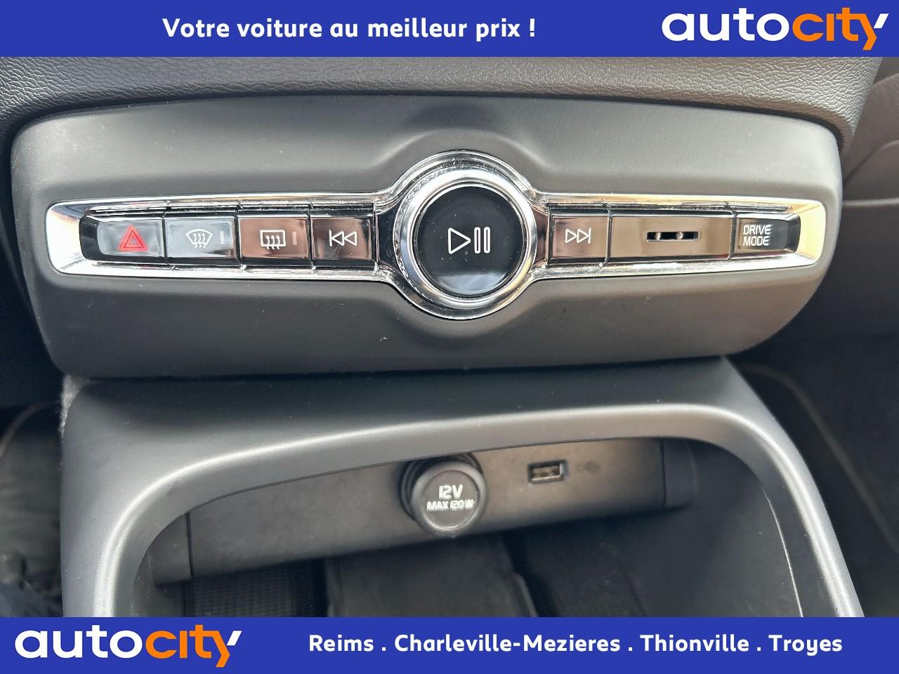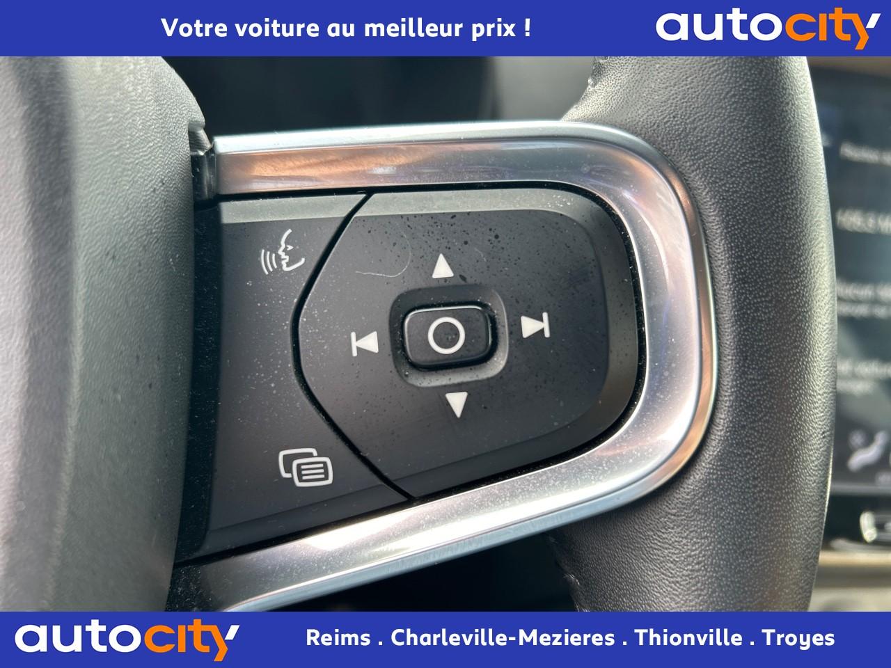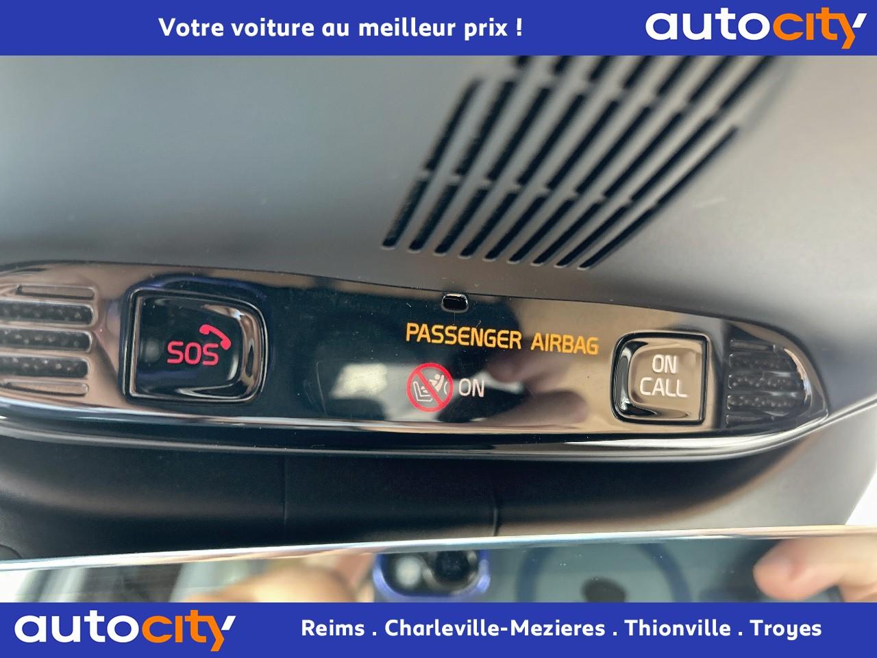 2 porte-cintresAirbag genoux conducteurAirbag passager désactivable avec témoin d'indication (on/off)Airbags conducteur et passager à déclenchement différenciéAirbags latéraux conducteur et passagerAirbags rideauxAlerte franchissement de ligne activeAlerte vigilance conducteurAllumage automatique des projecteursAppuie-tête réglables en hauteur sur les sièges avantAssise des sièges avant à absorption d'énergieAssistance au démarrage en côteBas de caisse et passages de roues AnthraciteBouton de verrouillage centraliséCapteur de pluieCeintures de sécurité à inertie à 3 points d'ancrage sur les 5 siègesCeintures de sécurité actives à prétensionneursCity Safety, système d'anticipation de collision intelligentCleanZone Filtre à charbon de climatisation multi-actif AQS et fonction pré-ventilationClimatisation automatique avec système de recirculation d'air et filtre anti-pollenCombiné d'instruments digital 12,3” personnalisableCommande vocale avancéeCommandes audio au volantConnexion BluetoothContour de calandre chroméContrôle de la stabilité au roulis RSCCorrecteur électronique de trajectoire (ESC)Crochet pour sacs intégré à la boîte à gantsDéclenchement automatique des feux de détresse lors d'un freinage d'urgenceDirection assistée électrique asservie à la vitesseDossier arrière rabattable 60 / 40Eclairage aux pieds à l'avantEclairage d'approche et d'accompagnementEclairage dans la boîte à gantsEclairage du coffre (2 spots)Ecran tactile multimédia haute résolution 9”, personnalisableFeu arrière antibrouillardFeux de freinage d'urgenceFeux de jour à LEDFonction climatisation de l'habitacle moteur coupéFonction Eco+ : optimisation des paramètres véhicule pour une conduite économique et écologiqueFonction Start/StopFrein de parking électronique automatique avec fonction Auto Hold (désactivable)Freinage automatique post-collisionIncrustations AluminiumIndicateur de perte de pression des pneumatiquesJantes alliage 18” 5 branches Argent avec pneus 235/55 R18Kit anti-crevaisonMatériaux anti-allergènes dans l'habitacle (sellerie,ceintures de sécurité, incrustations)Miroirs de courtoisie éclairésMode de conduite personnalisablePare-brise en verre feuilleté et colonne de direction rétractable en cas de chocParties inférieures des rétroviseurs extérieurs peintes en NoirPédale de frein rétractable en cas de collisionPeinture non métalliséePhares LED avec correcteur dynamique de la portée, feux de route adaptatifs et feux de jour design marteau de ThorPlaques de protection avant et arrière Argent brillantPommeau de levier de vitesses gainé de CuirPorte-cartes bancaires et cartes de services intégré dans la planche de bordPorte-ticket de parking et d'autoroutePré-câblage électrique pour le crochet d'attelagePréparation pour le système de fixation Isofix (sièges latéraux de la banquette arrière)Prise 12V dans le coffreProtection de pare-chocs avant couleur argentRadar de stationnement arrière avec signal sonore et visuelRails de toit couleur Argent brillantRangement sous la console centraleRappel d'oubli de bouclage des ceintures de sécurité avant et arrièreRappels de clignotants à LED intégrés aux rétroviseurs extérieursReconnaissance des panneaux de signalisationRéglage en hauteur manuel des ceintures avantRéglages lombaires électriques des sièges conducteur et passagerRégulateur et limiteur de vitesseRétroviseur extérieur conducteur grand angleRétroviseurs extérieurs couleur carrosserieRétroviseurs extérieurs rabattables électriquementRétroviseurs intérieur sans contours et extérieurs électrochromesSellerie tissuSensus Connect : Applications web, affichage et lecture vocale des SMS (TTS), eManuel utilisateur et service révision connectéeSeuils de portes avantSiège conducteur réglable manuellement en hauteurSiège passager réglable en hauteur manuellementSièges conducteur et passager avant avec réglage manuel de la longueur et inclinaisonSonde de température extérieure et horlogeSortie d'échappement simple non visibleSpots de lecture à l'avantSystème audio Volvo High PerformanceSystème de contrôle de la descente (HDC)Système de contrôle de la stabilité et de la traction STCSystème de contrôle du freinage du véhicule VDCSystème de protection anti-sortie de routeSystème de protection collision frontaleSystème de réglage en hauteur des pharesSystème intelligent d'informations au conducteur IDISTapis de sol textile à l'avant et à l'arrièreTélécommande de verrouillage centralisé avec clé de contact intégrée, fermeture à distance des vitres et du toit ouvrant et fonction panique (déclenchement du klaxon et des feux de détresse)Trappe à carburant intelligente sans bouchonTrousse de 1er secours et triangle de présignalisationTunnel de la console centrale AnthraciteVerrouillage automatique des portes à partir de 7 km/hVerrouillage manuel de sécurité enfantVitres avant et arrière électriques à impulsion (montée et descente) avec système anti-pincementVitres teintées à 25 %Volant 3 branches gainé de Cuir avec insert AluminiumVolant réglable en hauteur et en profondeurVolvo On Call avec fonction Car Sharing